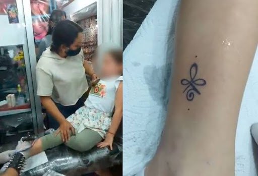 En la grabación que subió el usuario de Facebook Sonata Estereo se puede observar como un sujeto le esta realizando un tatuaje en el tobillo de una pequeña mientras esta llora y abraza a su madre.