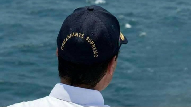 Además del cautivador paisaje, las imágenes destacan por la gorra que cubre al presidente: un diseño en color azul con la leyenda “Comandante Supremo”. Como titular del Ejecutivo federal, Peña Nieto es el Comandante Supremo de las Fuerzas Armadas.