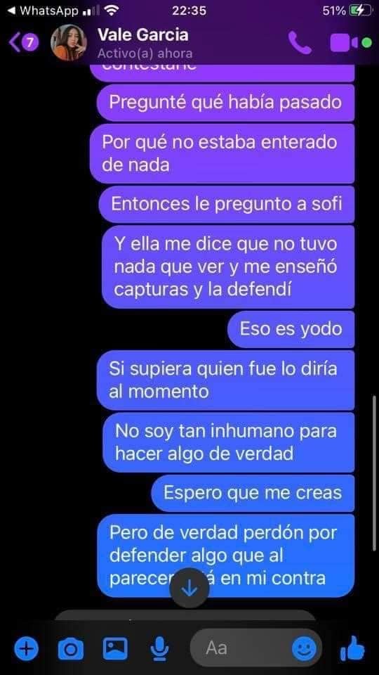 “Yo tengo que salir, tengo que regresar, no estoy todo el día en mi casa…me pusieron el pie bastante feo, también es mi culpa por ser tan, hasta cierto punto, ignorante, creído, inocente hasta cierto punto porque nunca en verdad… nadie, me había hecho esto, nadie. Es triste pensar de los que yo me fie, confié en que fueran mis compañeros, a un tiempo futuro mejores amigos, me hicieran esto porque duele, duele bastante que te hagan esto, que te traicionen”, les dice.