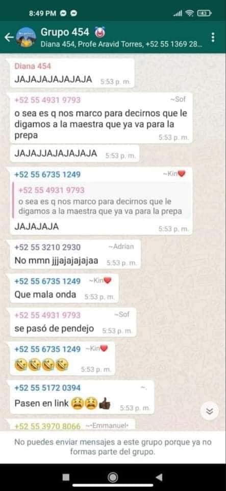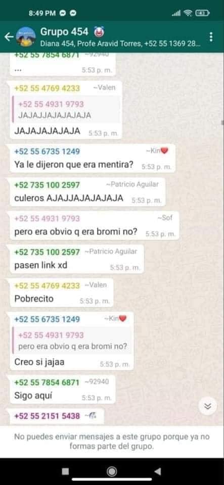 Jorge preguntaba insistentemente a sus compañeros si era verdad, a lo que una de sus compañeras que iniciaron la broma, identificada como Sofía, le confirmó la broma y él joven decidió trasladarse a la escuela.