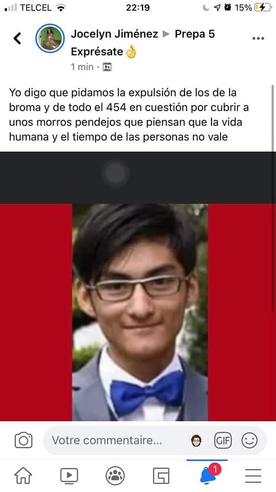 Este miércoles 4 de noviembre, después de que el gobierno de la Ciudad de México publicara la Alerta Amber, a través de grupos de Facebook de alumnos de la prepa 5, sus mismos compañeros de grupo dieron a conocer detalles de la broma escolar, que lo hizo trasladarse a ese plantel.