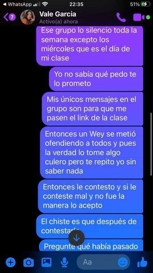 “Para muchos será una bromita, ‘ay no pasa nada, ay pues ya’…uno tampoco está mucho a la disposición de las personas, habemos unos que vivimos bastante lejos, otros que tenemos que salir a comprar cosas, a hacer cosas para después regresar a la ciudad para después revender esas cosas, hay muchas personas que se quedan en su casa sentaditos, comen, se paran, hacen la tarea y se estresan todo el día”, prosigue en un audio de más de cinco minutos.