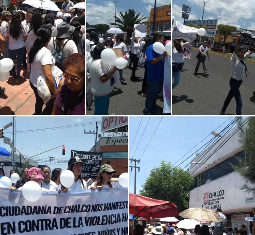 Llenos de impotencia por el último feminicidio ocurrido en Chalco, como el de la estudiante Diana, quien fue encontrada sin vida y tirada entre la basura en una carretera del pueblo de San Mateo Tezoquipan, Miraflores, un grupo de vecinos, encabezados por Guadalupe Granados Nieves.