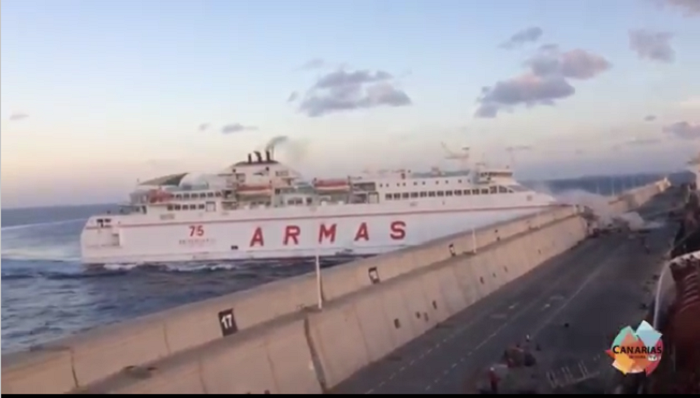 Barco que transportaba a 140 personas terminó encallado en las islas españolas cuando realizaba un viaje de Gran Canaria a Tenerife, en España. Se estrelló el día viernes contra el muelle del puerto de Las Palmas, informan el medio electrónico RT en Español.
