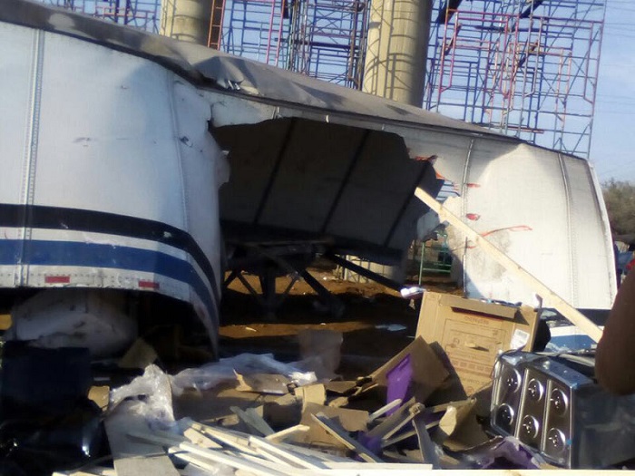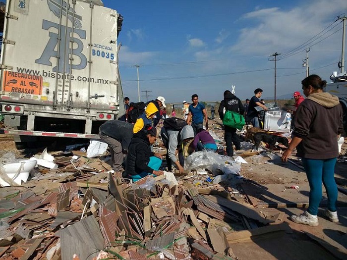 TULA DE ALLENDE.- Un tren chocó contra un tractocamión que transportaba loseta a la altura de las vías de Teocalco, en la carretera Tula-Tlahuelilpan. Los vecinos de zonas aledañas, al saber que el vehículo de carga fue abandonado, de inmediato iniciaron la rapiña.