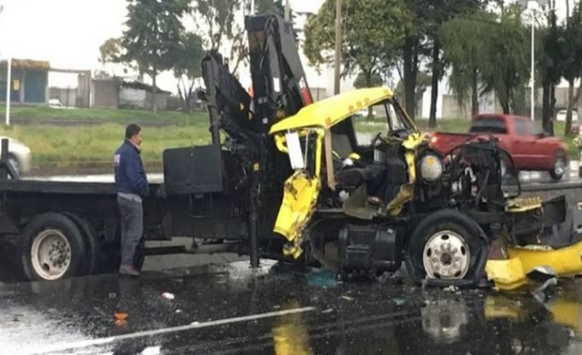 El conductor de una grúa acabó en el hospital tras estrellar su unidad contra un tráiler. Exceso de velocidad, falta de precaución y la lluvia se conjuntaron para que se diera el accidente, sobre los carriles de baja velocidad de la carretera Toluca-Palmillas.