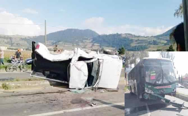 Al menos tres personas heridas de gravedad, entre ellos un menor de edad, dejó el choque y volcadura entre un camión de pasajeros y una camioneta particular en la carretera Tenango-Toluca.