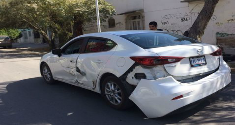 El accidente tuvo lugar este miércoles alrededor de las 13:40 horas cuando una camioneta Ford F150 y un carro del año Mazda en color blanco, se cerraron el paso, dejando todo el lateral derecho del automóvil dañado.