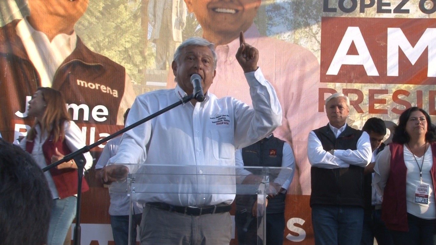 El candidato a la Presidencia de la República por la coalición Juntos Haremos Historia, Andrés Manuel López Obrador, se presentó en Tecate para cerrar su gira por Baja California en un evento realizado en el parque Miguel Hidalgo.