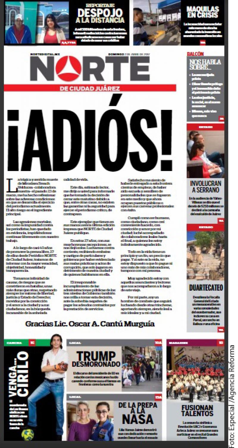 En la publicación, Cantú Murguía afirmó que a lo largo de 27 años, Norte de Ciudad Juárez trató de informar con la mayor veracidad, objetividad, honestidad y transparencia, a la vez que tomaron infinidad de causas y de riesgos que se convirtieron en batallas.