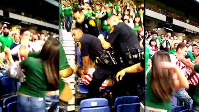 Pese a la pobre asistencia de la afición para disfrutar del amistoso entre la Selección mexicana y Bosnia, la violencia se hizo presente en las gradas del estadio Alamodome.