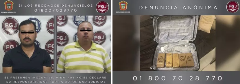 En un operativo realizado por elementos de la Fiscalía Regional de Naucalpan, de esta Fiscalía General de Justicia del Estado de México (FGJEM) fueron detenidos dos sujetos quienes tenían en su poder 5 kilogramos de droga, conocida como heroína, la cual al parecer trasladarían al estado de Tamaulipas.