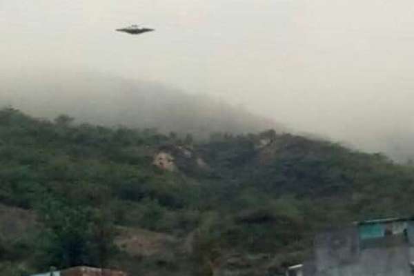 A través de las redes sociales circulan retratos este objeto con forma de disco de color plateado sobrevolando uno de los cerros; algunas casa se pueden apreciar en primer plano.