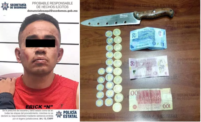 En el lugar, los elementos adscritos a la Dirección General de Combate al Robo de Vehículos y Transporte (DGCRVyT) rescataron a Erick “N” de 36 años, quien fue señalado directamente por la dueña de una tienda de abarrotes, de haberle quitado dinero en efectivo, tras ser amagada con un arma punzocortante por el sujeto.