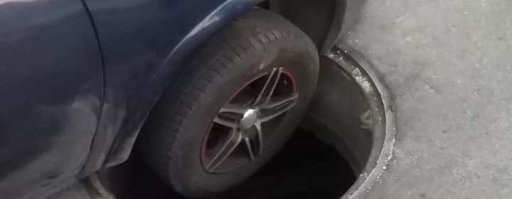 Circulando el día de hoy por la avenida que sale de lo que es Cd. Jardín, en la salida hacia el Bordo de Xochiaca, a un costado del Centro Comercial Liverpool, nos encontramos una coladera destapada en la que desafortunadamente cayó un automovilista.