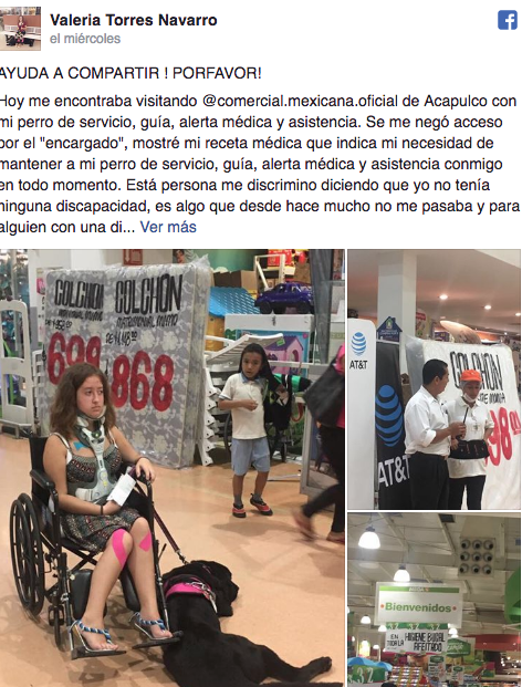En el puerto de Acapulco, una muchachita con síndrome de Elhers-Danlos fue víctima de discriminación por un troglodita guardia de seguridad de una sucursal de Comercial Mexicana de la Zona Diamante; el indolente le prohibió el acceso a su perro de servicio, alerta médica y asistencia.