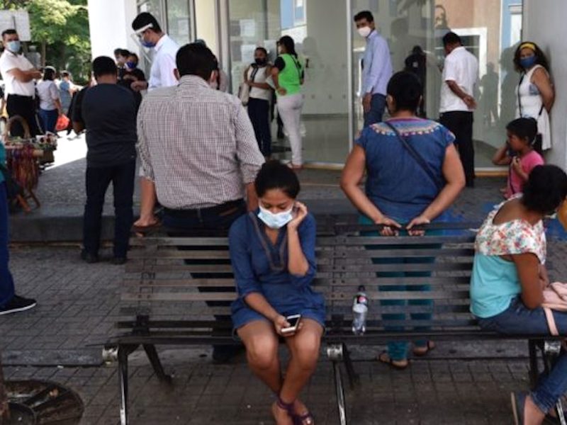 Largas filas de personas en los bancos y los tianguis donde venden principalmente ropa, abarrotado de personas.