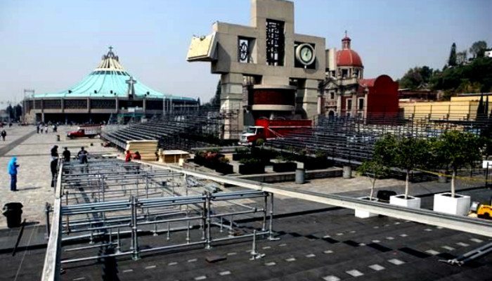 Según información del Diario Reforma, en el santuario lucen cuatro bloques de gradas, donde se sentará parte de los 30 mil asistentes.
