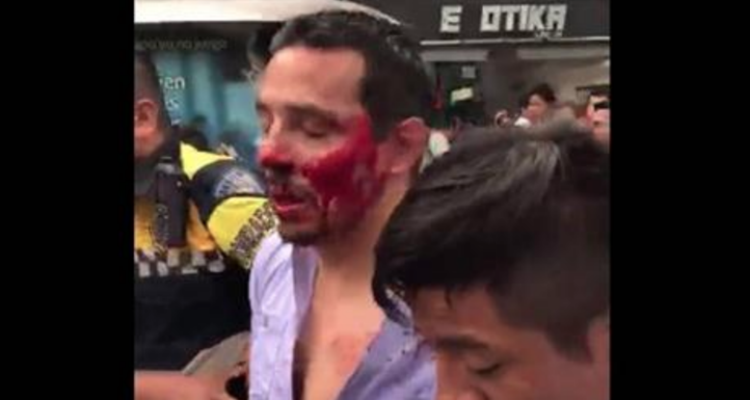 En dicho video se ve al conductor Alejandro Tinoco con la cara ensangrentada, quien camina sobre la vialidad custodiado por dos policías de tránsito, quienes lo llevan esposado.