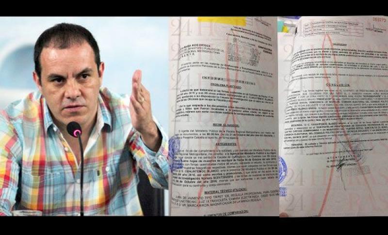 El dictamen incluido en la Carpeta de investigación SC01/7335/2016 de la Fiscalía Regional Metropolitana resalta que las firmas legibles que obran en el Contrato de Prestación de Servicios Profesionales, así como cuatro cartas compromiso y un manifiesto del PSD de Morelos, de fecha 17 de enero de 2015, y que se atribuyen al actual edil, “sí fueron puestas de puño y letra por el C. Cuauhtémoc Blanco Bravo, ya que presentan un mismo origen gráfico a las firmas legibles auténticas indubitables, tomadas como base de cotejo y de confronta, por lo tanto las firmas legibles cuestionadas plasmadas en las documentales antes descritas, si fueron plasmadas de su puño y letra”, dice.