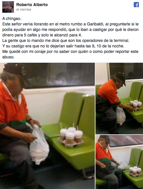 Verán, el varón explicó al joven que lo encontró sollozando que lo habían mandado por cinco cafés, pero sólo le había alcanzado para cuatro, así que temía ser castigado porque sus superiores lo dejarían salir hasta las diez de la noche.