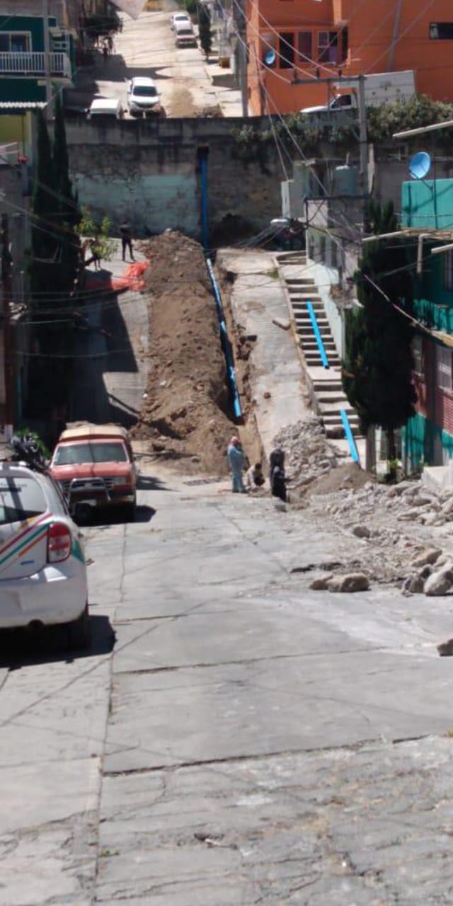 Con 70 por ciento de avance, el Gobierno de Naucalpan construye una línea de conducción de agua potable en la colonia San Rafael Chamapa Segunda Sección.
