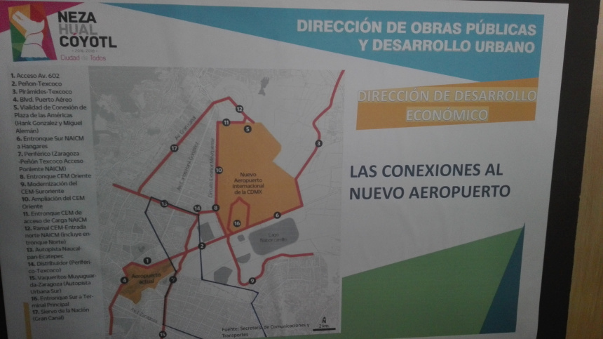 Juan Hugo de la Rosa dijo que sólo se construyen autopistas de cuota hacía el aeropuerto en el ex lago de Texcoco, lo que el tráfico de vehículos se cargará en avenidas de Nezahuacóyotl como el Bordo de Xochiaca, la calle 7, el Periférico, López Mateos, Villada, Carmelo Pérez, entre otras qué conectan a la calzada Zaragoza de la ciudad de México.