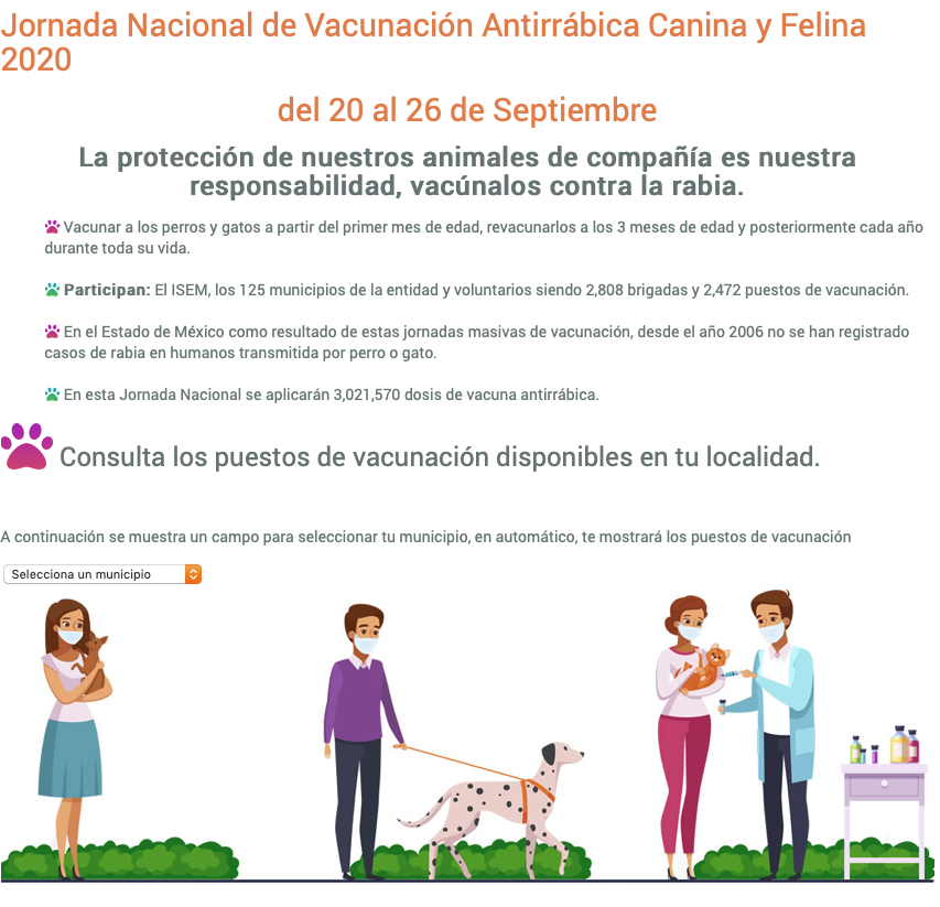 Bajo el lema “La protección de nuestros animales de compañía es nuestra responsabilidad, vacúnalos contra la rabia”, detalló que el gobernador Alfredo Del Mazo Maza ha impulsado políticas públicas a favor de la fauna domestica, pero agregó que es indispensable la participación de la ciudadanía y de agrupaciones.