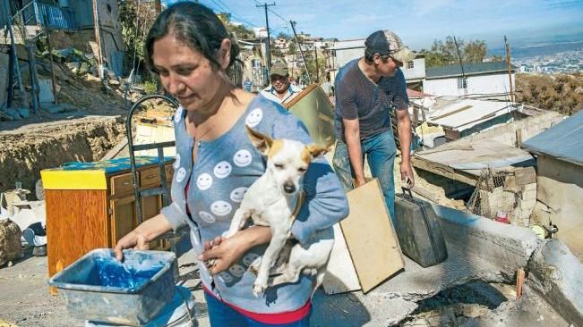 Alrededor de 70 viviendas localizadas en la colonia Lomas del Rubí, al suroeste de Tijuana, colapsaron la mañana del sábado. Un desplazamiento de tierra dejó a decenas de familias sin hogar y las calles repletas de escombros.
