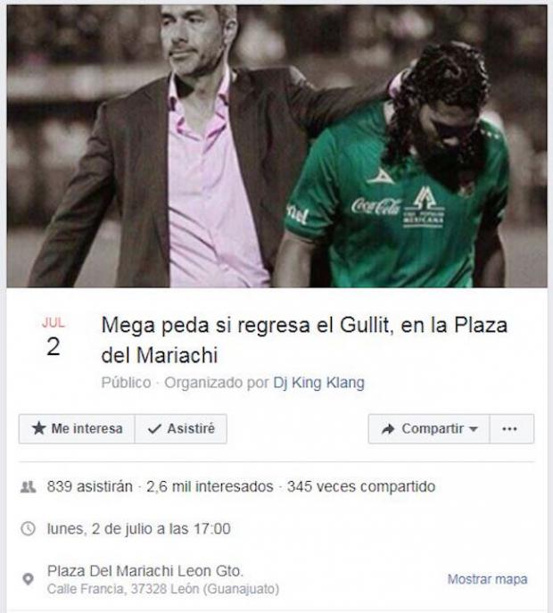 Tanto es el cariño que la afición de León tiene por el ‘Gullit’ que ya hasta convocaron a una “mega peda” si Peña se vuelve a enfundar en la camiseta esmeralda.