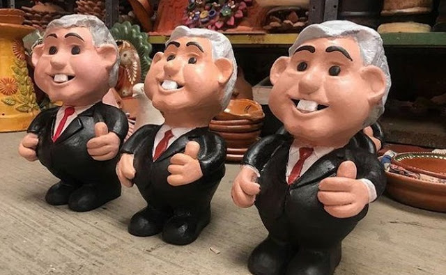 El artesano de Metepec, Jesús Neri Morales, creó estas piezas antes de las elecciones presidenciales que declararon ganador al tabasqueño, pero fue hasta después de los comicios que comenzó a venderlas en 180 pesos cada una.