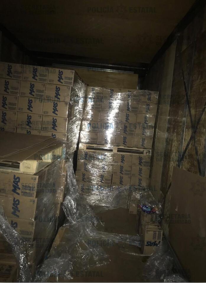 El denunciante sostuvo que desconocía la identidad de ese grupo de sujetos que, con urgencia, cargaban dos camiones tipo torton con el contenido de la caja seca, por lo que de manera inmediata los efectivos se trasladaron hasta el sitio indicado.