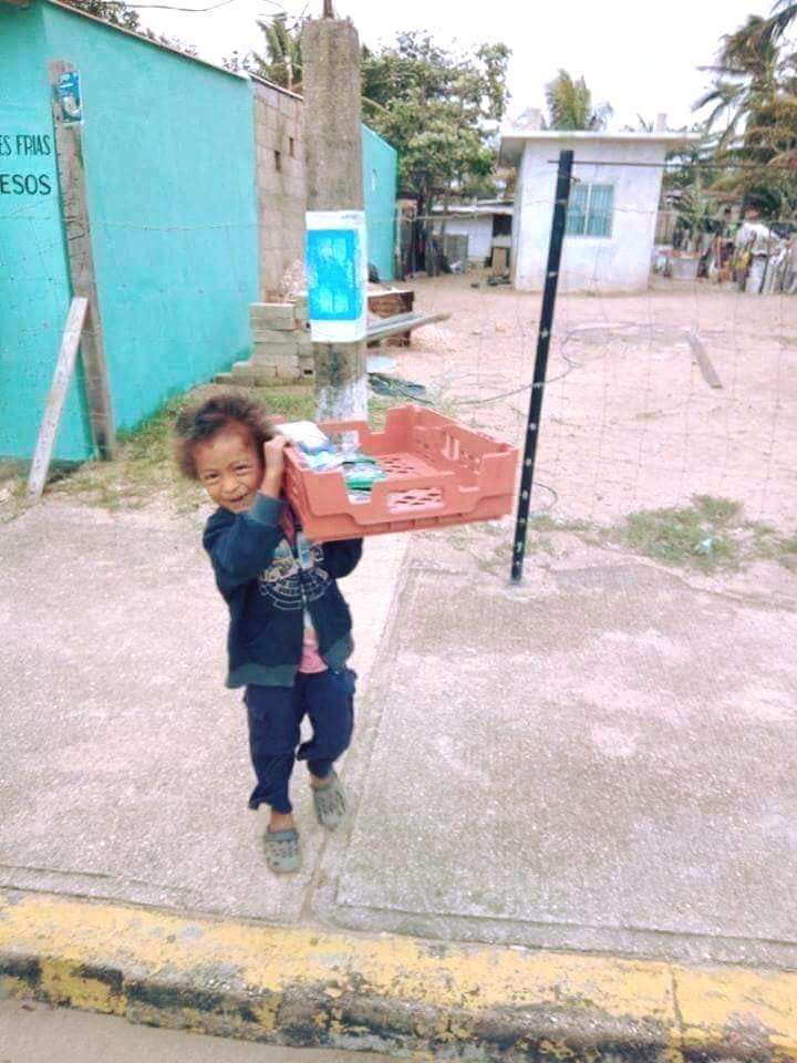 Tengo cinco meses como repartidor de la empresa mexicana de panificación multinacional más grande en el mundo y desde hace tres meses cubro la ruta Villa Allende, congregación de Coatzacoalcos sitio donde los sábados cuento con la ayuda de mi pequeño y peculiar ayudante.