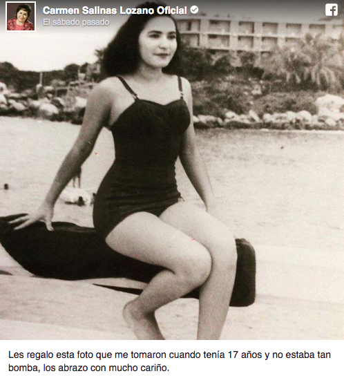 Para muestra una fotografía que la propia compartió a través de su cuenta de Facebook, con el mensaje: “Les regalo esta foto que me tomaron cuando tenía 17 años y no estaba tan bomba, los abrazo con cariño”