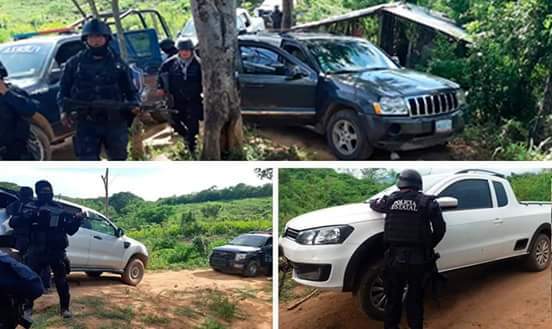 Policías Estatales de la Coordinación Operativa de la Región de Costa Grande, del Grupo de Operaciones Especiales “Jaguar” y personal de Ejército Mexicano, aseguraron en el municipio de Petatlán,siete vehículos, una cuatrimoto, cartuchos útiles, equipo táctico y probable marihuana.