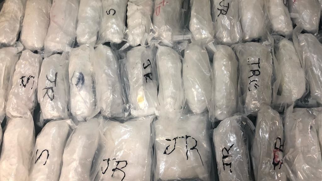 Se trata de aproximadamente 18 kilogramos de metanfetamina, los cuales fueron asegurados junto con el sujeto y puestos a disposición del Agente del Ministerio Público.