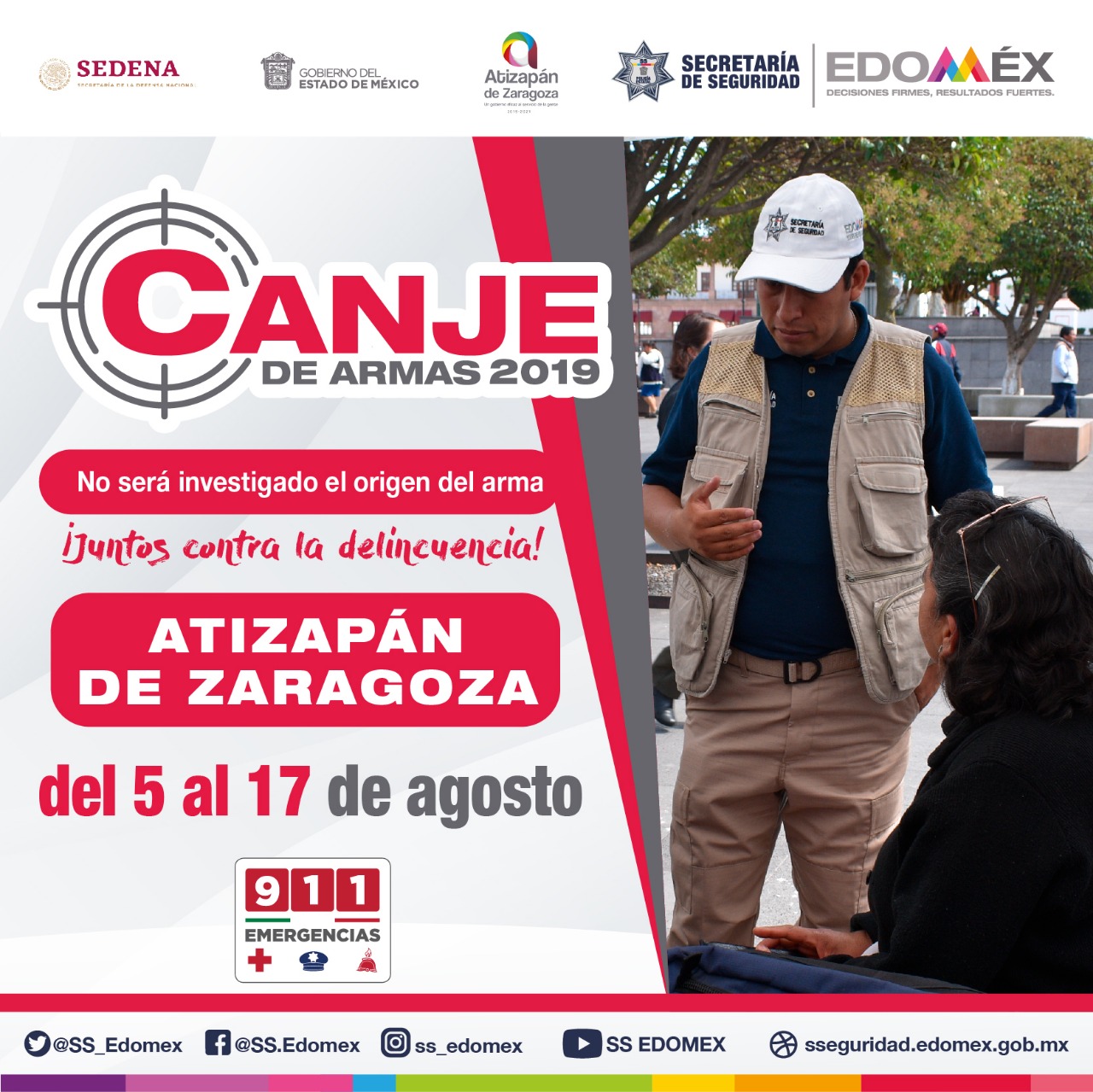 Del 5 al 17 de agosto se llevará a cabo el programa “Canje de Armas 2019” en Atizapán de Zaragoza, con el que se busca que la ciudadanía entregue de manera voluntaria y anónima armas de cualquier tipo.