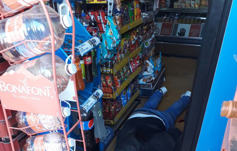 Testigos relataron que los rufianes llegaron en tres motos a la tienda de abarrotes Capricornio, pero a uno de los delincuentes se le fue un tiro de su arma y le pegó a uno de los delincuentes.