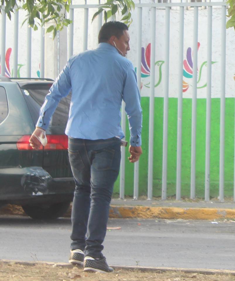 “Tengan mucho cuidado, el sujeto de las fotos (de camisa azul claro) se bajó de un auto rojo (Jetta) pistola en mano para despojar de su auto al conductor de un ibiza rojo en Circuito Navegantes en Satélite, Naucalpan”.