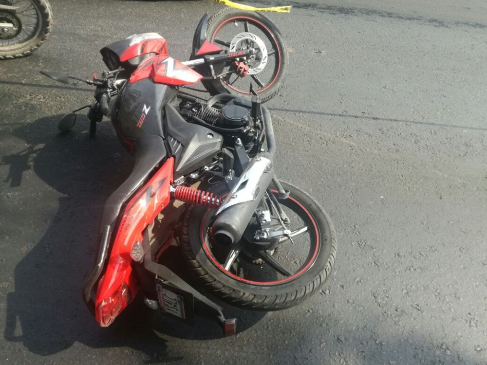 La moto Italika de color roja con placas de circulación 1S4LC del Estado de México, quedó botada metros más adelante del cuerpo.