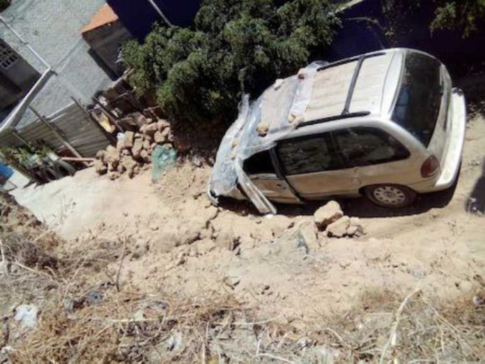 Tras la caída del tumulto de rocas, una camioneta resultó dañada, pero afortunadamente por esa calle conocida como Las Torres, ninguna persona pasaba por el lugar al momento del deslave, pero provocó que la arteria quedara cerrada y al momento bajo el resguardo de los uniformados.
