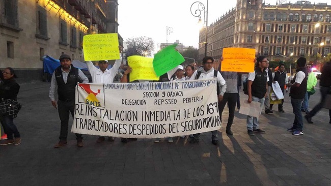 A los trabajadores adscritos al Régimen Estatal de Protección Social en Salud (REPSS) no les fueron renovados sus contratos ni hubo posibilidad de reubicación, por lo que un grupo de 50 personas protestó ayer afuera de Palacio Nacional, en la Ciudad de México.