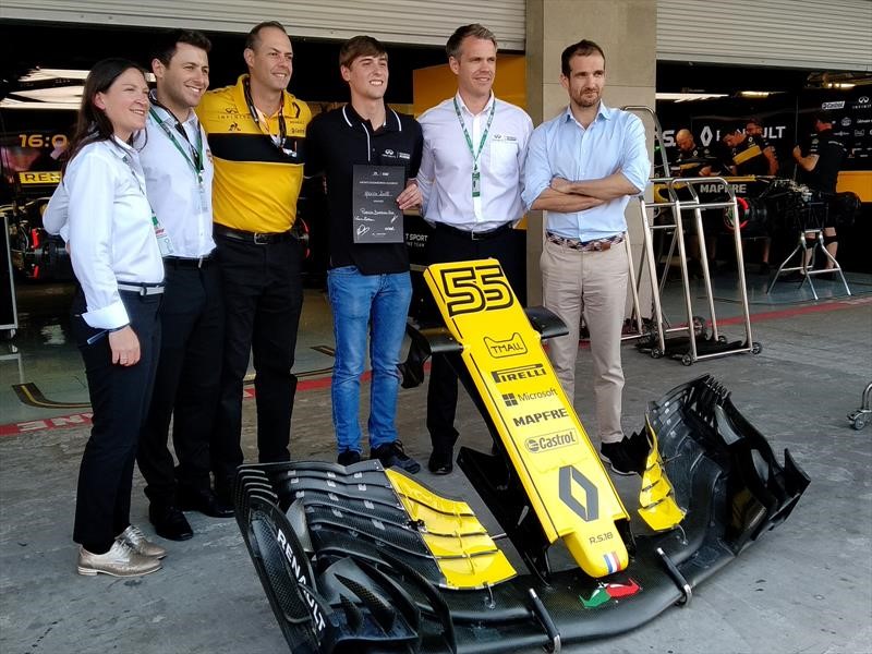 Después de la estresante competencia llena de acción que tuvo lugar en el Autódromo Hermanos Rodríguez en la Ciudad de México antes del Gran Premio de Fórmula 1 México 2018, un panel que incluye jueces de Infiniti, el equipo Renault Sport Formula One y expertos de la Universidad de Harvard, proclamaron a Patricio Barroso como el ganador, trabajando tendrá un sueldo competitivo, le asignarán un auto Infiniti, así como alojamiento y viáticos. En la foto a continuación aparecen Tommaso Volpe, director de Infiniti Motorsport Global y Proyectos de Performance, así como Carlos Sainz, piloto de la escudería de Renault Sport Formula One, entregando el reconocimiento de ganador al estudiante de ingeniería.
