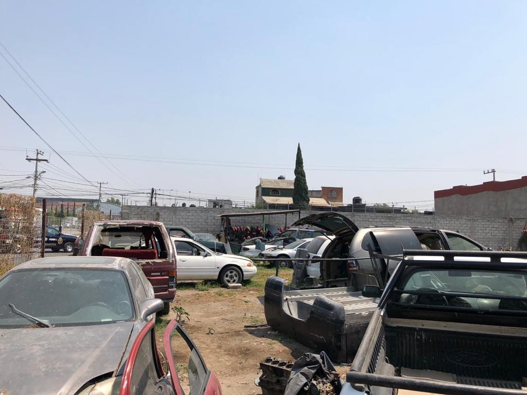 Una vez que la orden de cateo fue otorgada, Agentes de la Fiscalía mexiquense se trasladaron al sitio en donde fueron hallados y asegurados 30 vehículos, dos de ellos con reporte de robo vigente, además de una placa de circulación de un vehículo robado, así como 49 cartuchos útiles calibre .380 mm y 17 cartuchos útiles calibre 7.62.