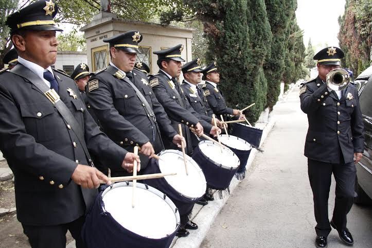 En el Panteón Francés con los respectivos honores yel toque de silencio de la Banda de Guerra, y el pase de lista, los uniformadosde la policía de Atizapán montaron guardia de honor frente al féretro de lapolicía de tránsito con 22 años de servicio.