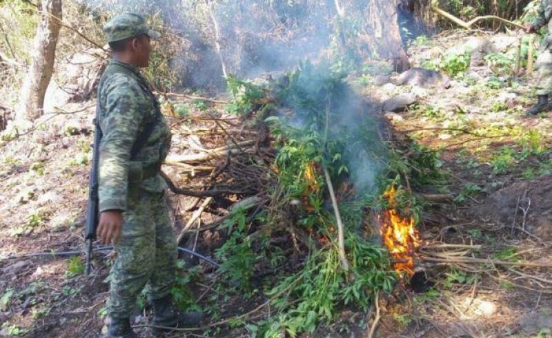 De acuerdo a la información proporcionada por la 21 Zona Militar, la localización del terreno, así como la destrucción e incineración en el lugar del enervante, derivó de los operativos que realizan las fuerzas estatales y federales.