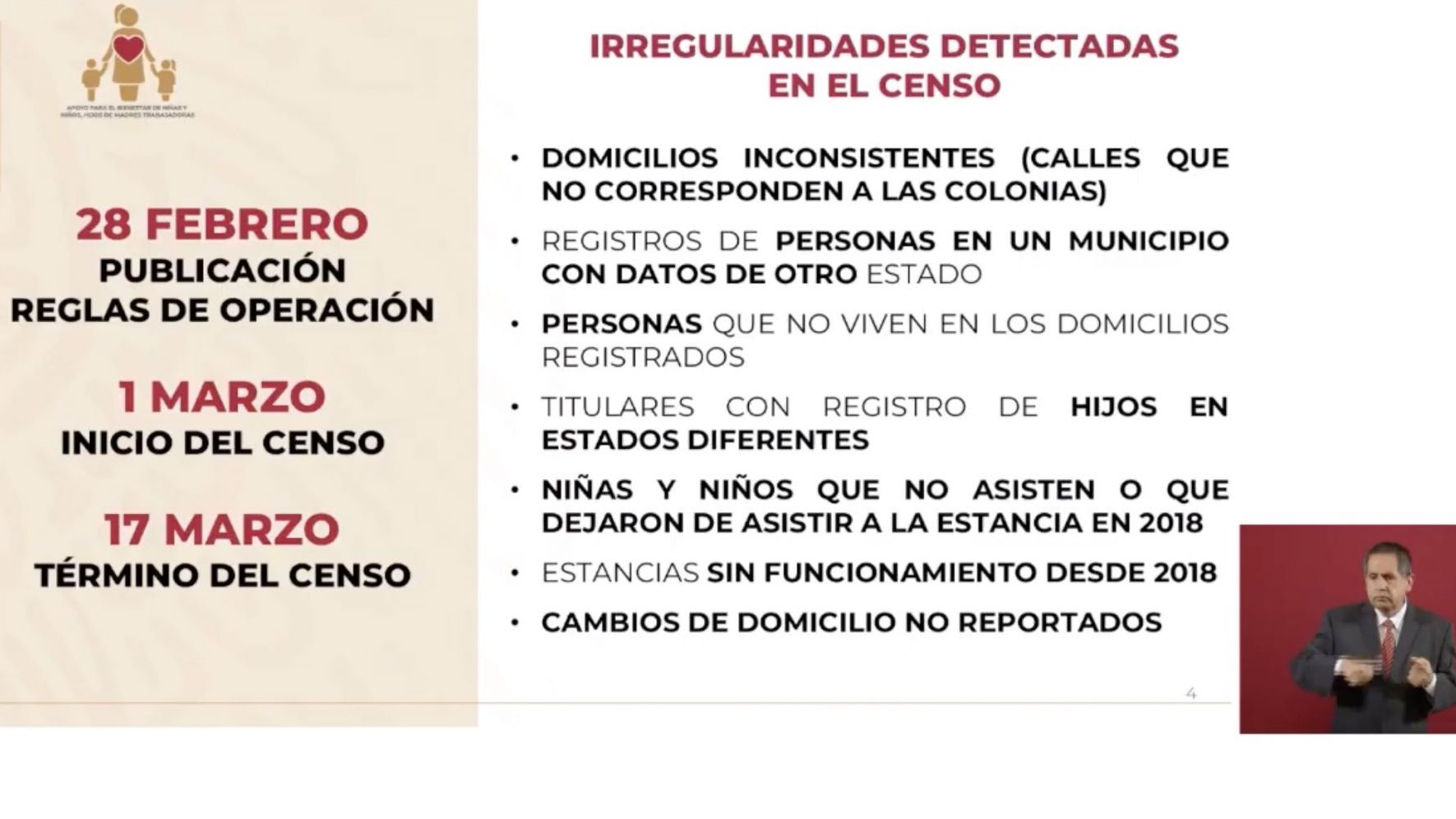 “El resto representan 97 mil niños que no localizamos y hay un catálogo de motivos por los cuales no fueron localizados e incorporados, principalmente porque los domicilios son inexistes, las personas no son localizadas en los domicilios registrados”.