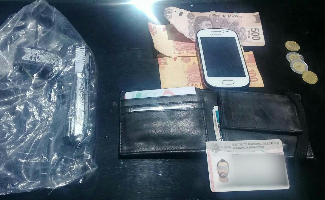 Los uniformados prestaron auxilio a dos hombres quienes señalaron e identificaron a Alberto “N” de 37 años de edad como la persona que los despojo de sus pertenencias, encontrándole en una bolsa de color verde dos celulares, dinero en efectivo y una pistola de color gris con negro por lo que fue trasladado al Ministerio Público tras hacerle saber sus derechos y el motivo de su detención.