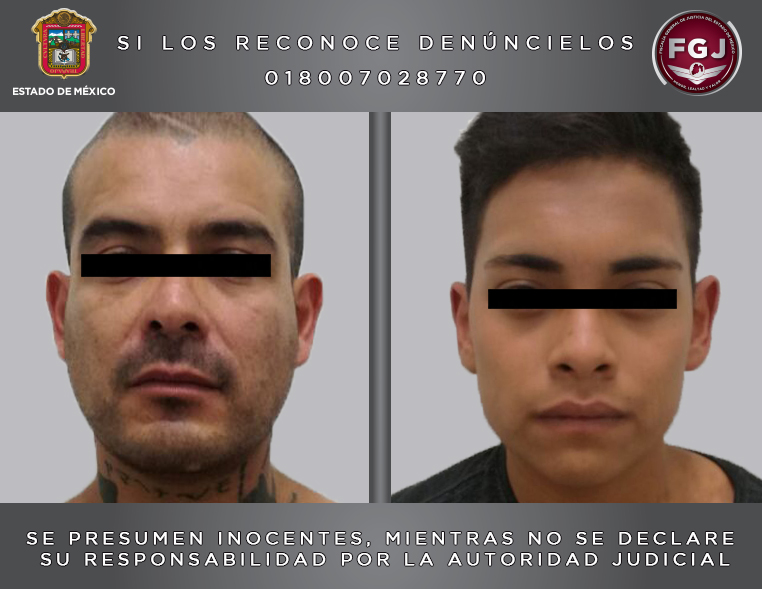 Estos individuos fueron detenidos en calles de la colonia Granjas de Guadalupe, del municipio de Ecatepec, momentos después de presuntamente haber despojado a un transeúnte, de su dinero y objetos de valor, cuando caminaba por la Avenida Adolfo López Mateos.