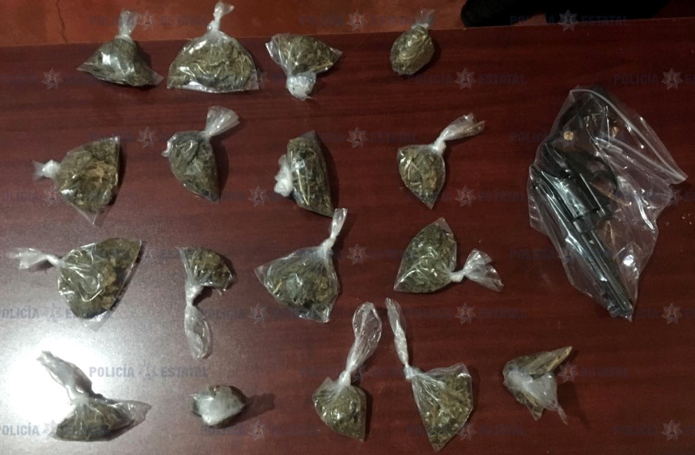 Tras repeler la agresión y de una persecución a pie se logró el aseguramiento de quienes ahora se sabe responden a los nombres de Pablo “N” y Alejandro “N”, de 21 y 25 años, respectivamente, quienes portaban entre sus pertenencias una pistola tipo revólver calibre 22, seis cartuchos percutidos, tres útiles y 17 envoltorios que en su interior contenían hierba verde con las características de la marihuana.